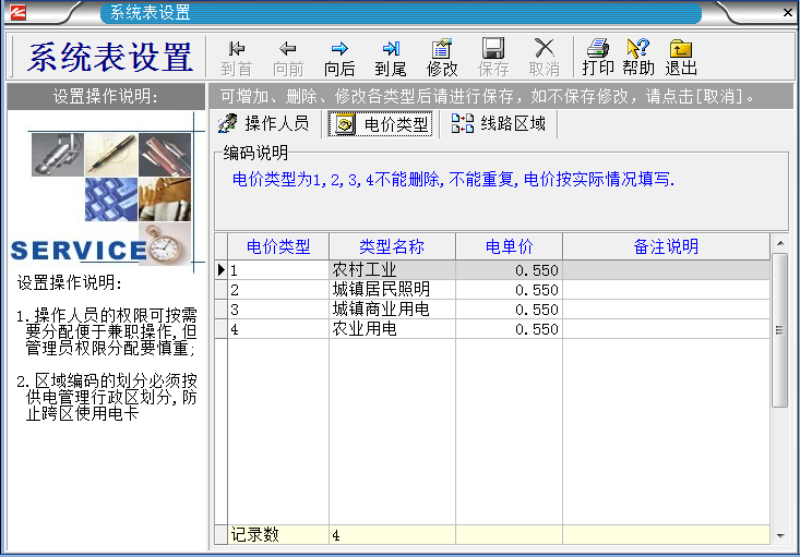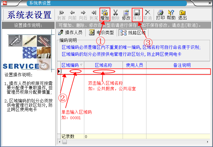 電價設(shè)置好之后,就設(shè)置區(qū)域。