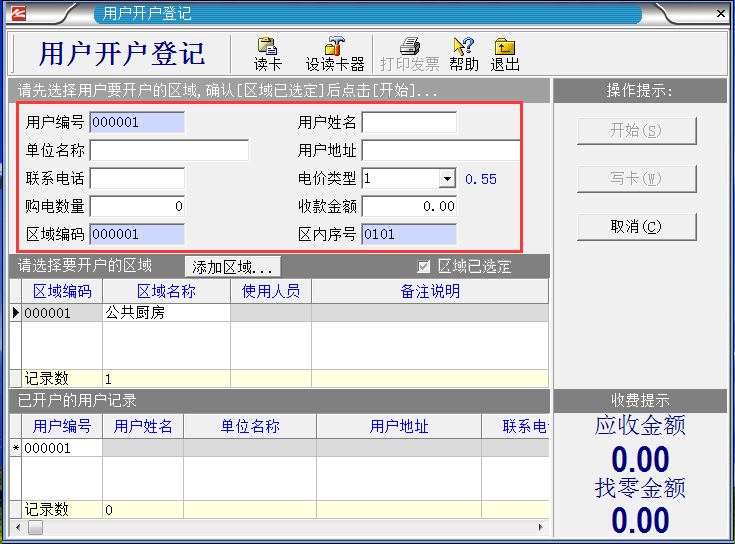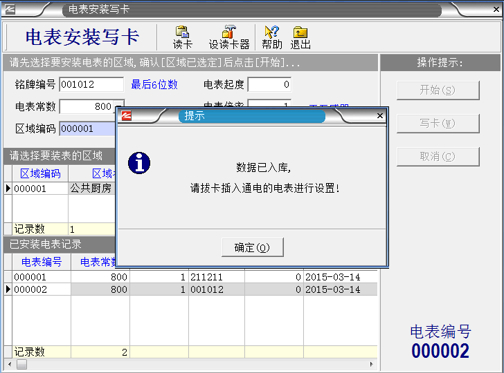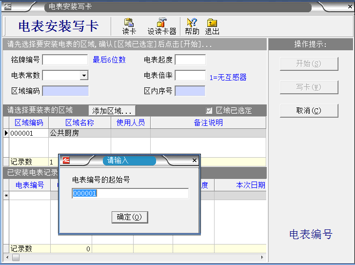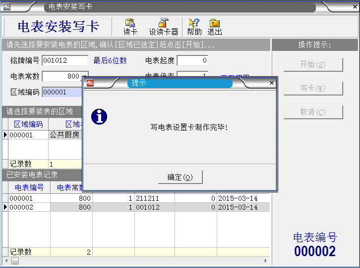 系統(tǒng)設(shè)置完成之后,把IC卡插入讀卡器,就進入制作“區(qū)域設(shè)置卡”。如下圖
