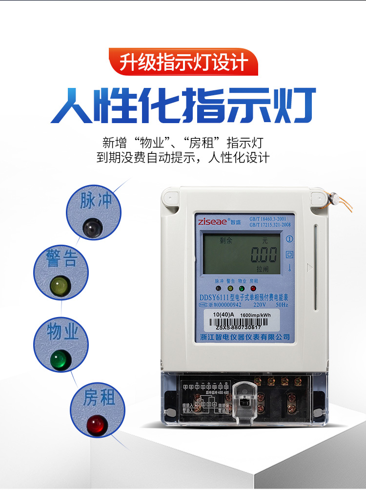12、 預警提醒:當表內剩余電量小于“報警電量”的2倍時,“報警指示燈”將閃爍(間隔為1秒)顯示提醒用戶購電,此時如用戶插卡響應,“報警指示燈”閃爍間隔變為2秒,可以避免斷電警告。