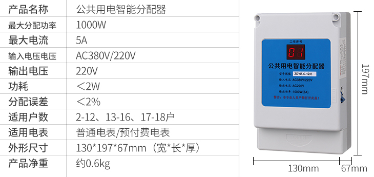 若有用戶的空氣開關斷開或未接到用電分配器上時,分配器自動識別該用戶未用電而不參與公共用電分配。