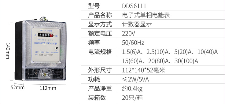 DDS6111單相電表 哈型 外貿出口型 英文版